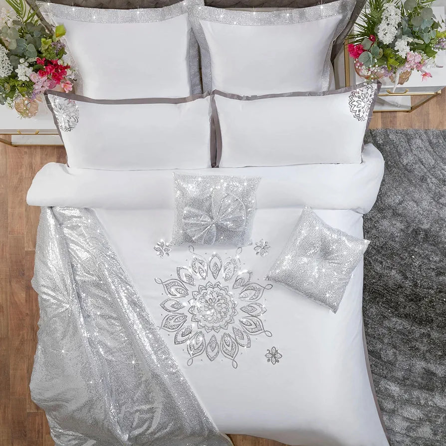 Grace Sequin Embellished Duvet Cover Set with Matching Pillow Cases