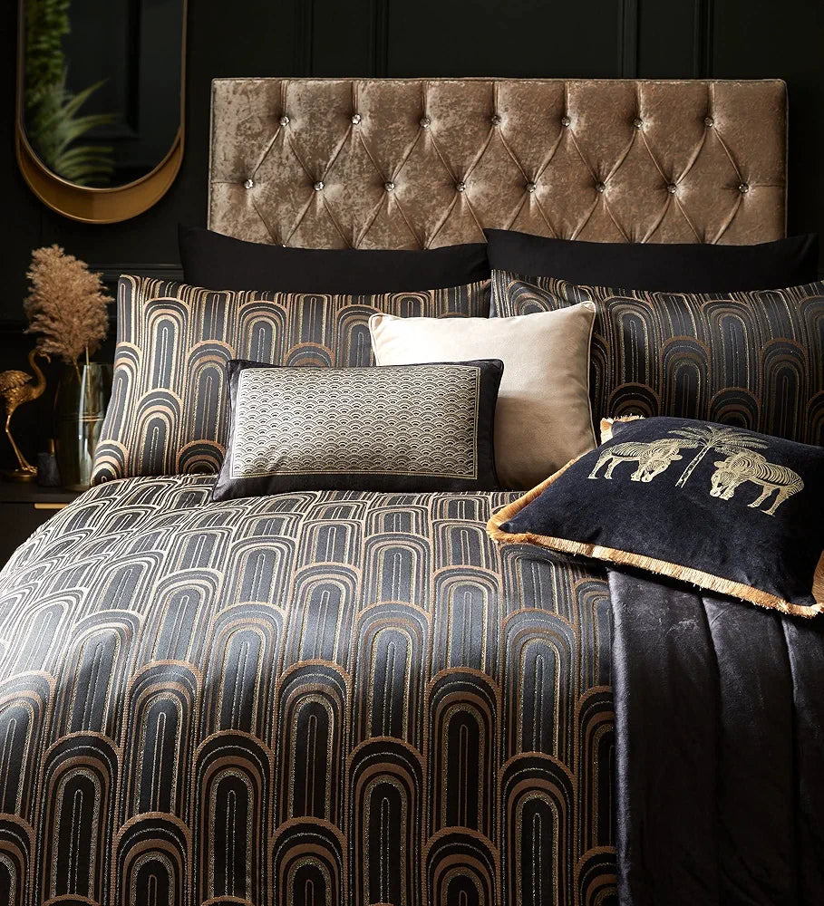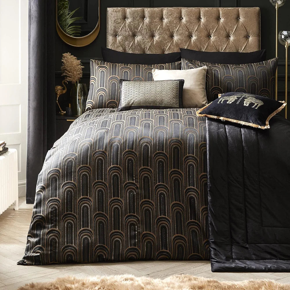 Jet Set - Duvet Cover Set - Double Bed Size in Jet Black / Gold