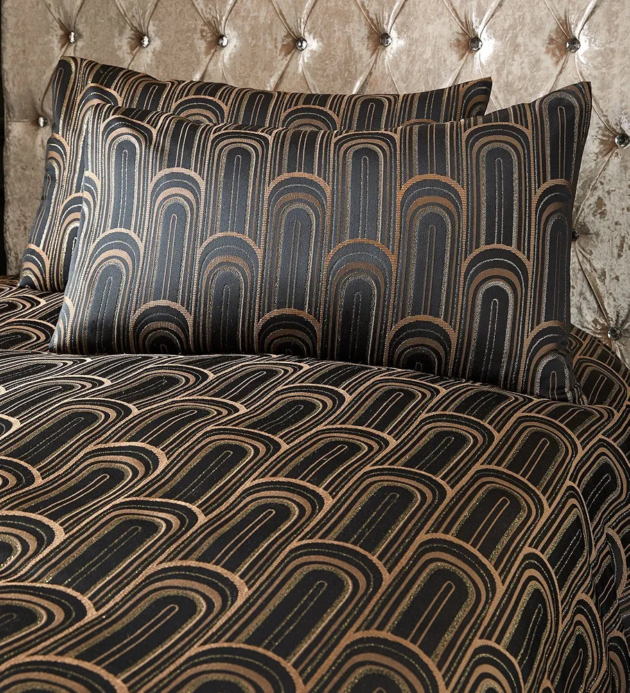 The sleek curves of a bygone time are at the heart of this luxurious, jazz age-style design. The Polyester jacquard weave bedding set features metallic yarn detailing for a rich and luxurious sheen – the last word in elegant indulgence.
