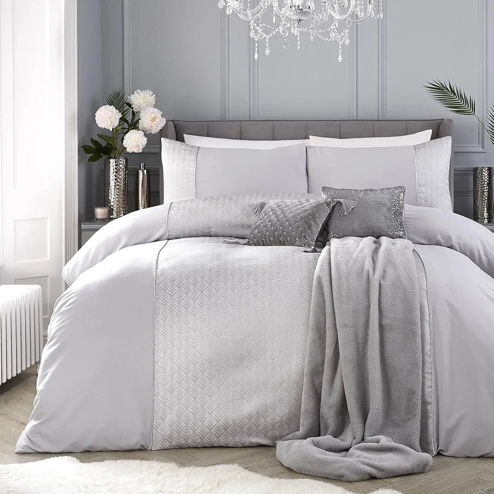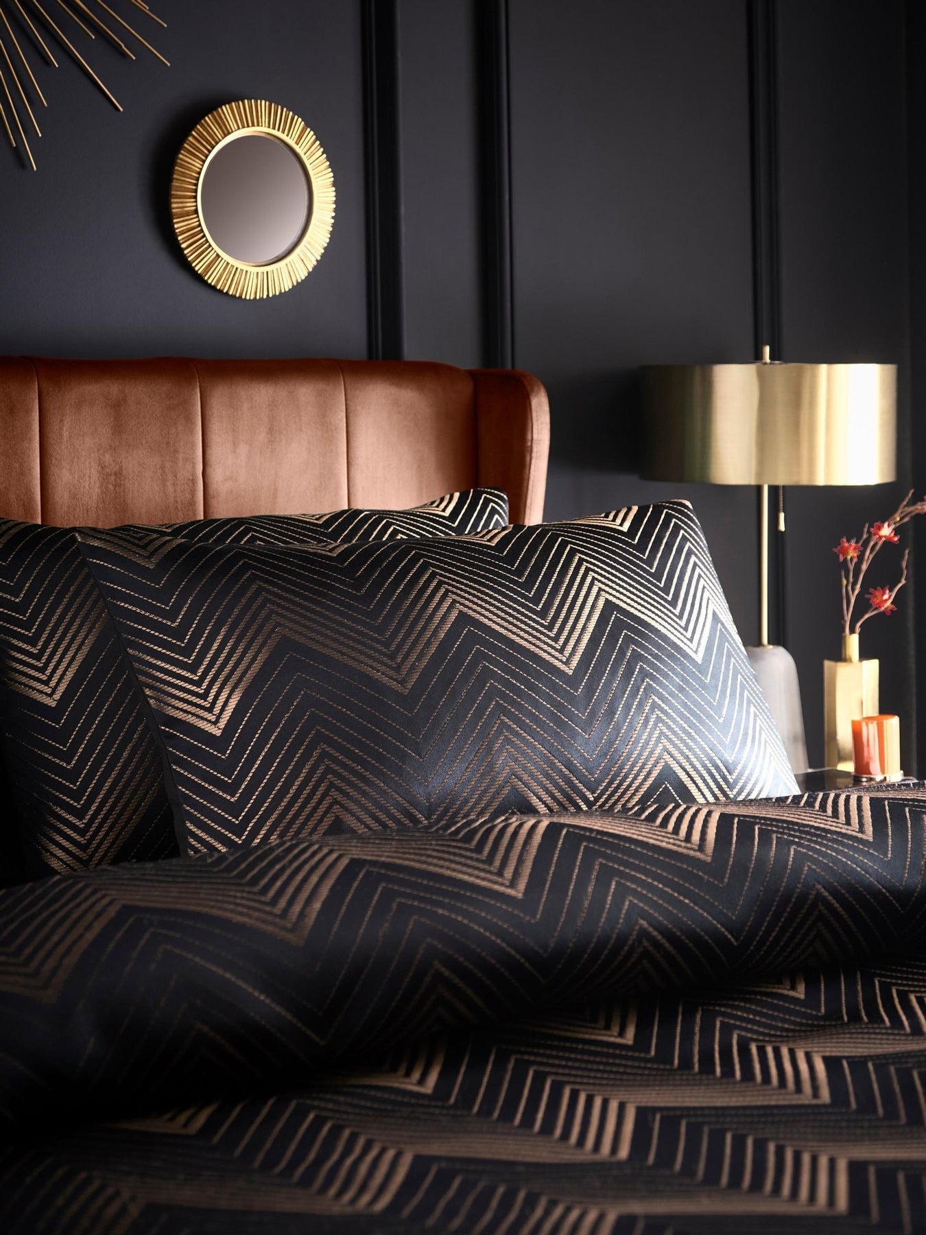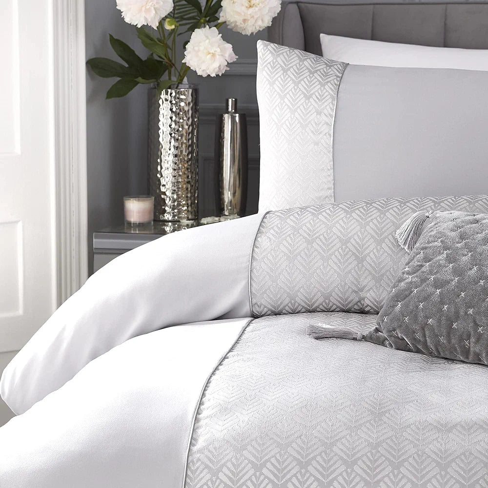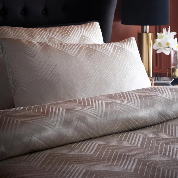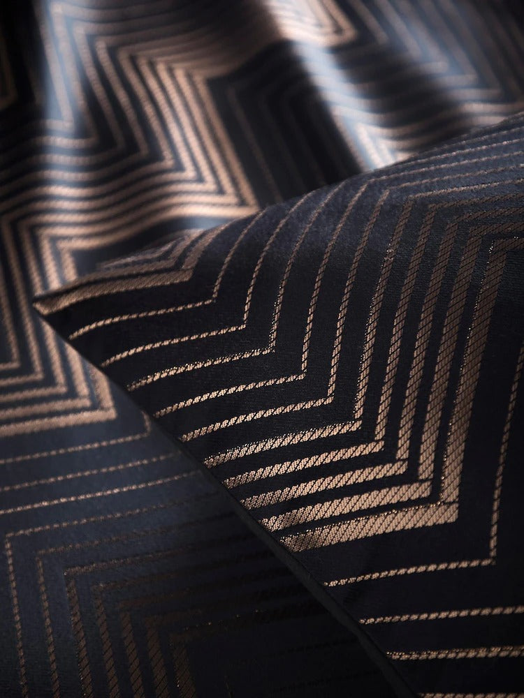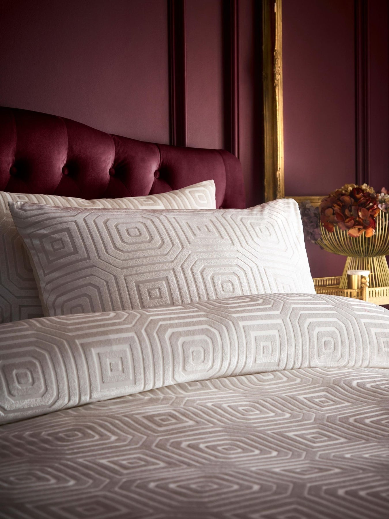 Transform your boudoir into a sanctuary of stately elegance with the Lawrence Llewelyn-Bowen Emile Duvet Cover Set. This exquisite ensemble is adorned with a masterful geometric jacquard, a symphony of intricate patterns woven to perfection, exuding an aura of timeless sophistication. Embrace the lavish textures and unparalleled quality of the Emile Set, where the front showcases the refined artistry of Jacquard weaving, captivating the eyes with its intricate geometric allure. The reverse features the serenity of plain dyed soft polyester, offering a sumptuous touch that cocoons you in delicate luxury.