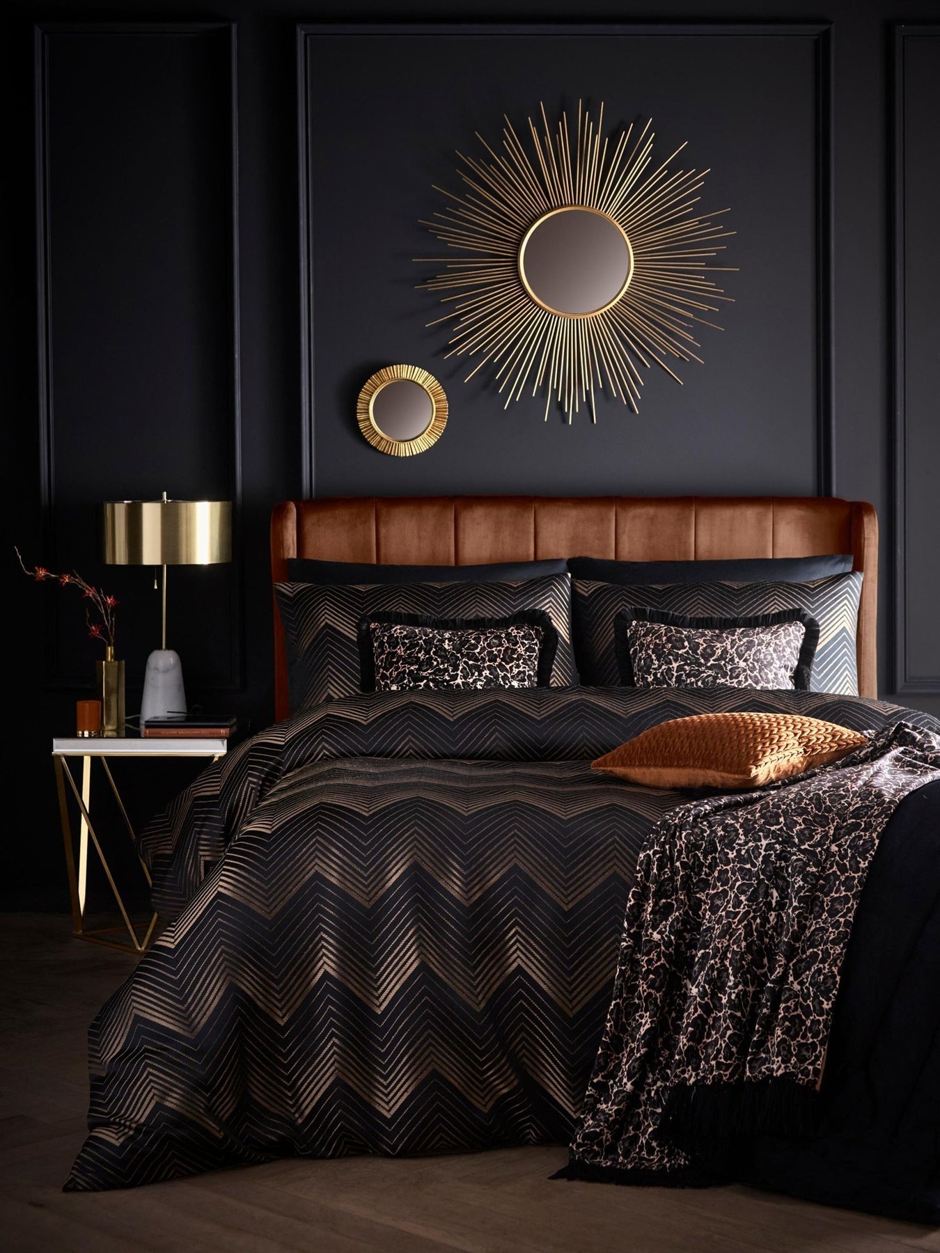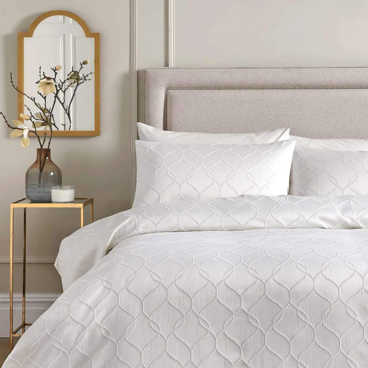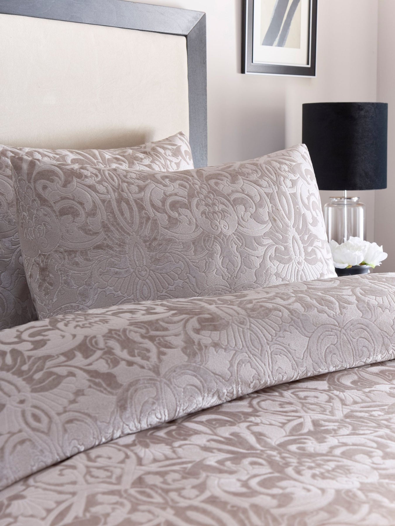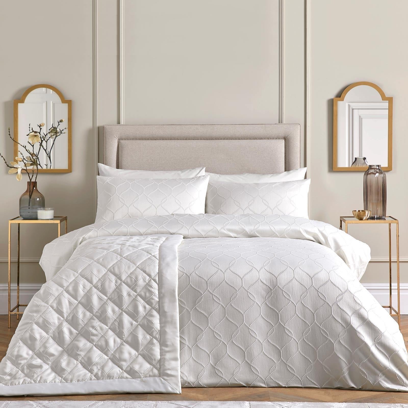 Transform your boudoir into a sanctuary of stately elegance with the Lawrence Llewelyn-Bowen Emile Duvet Cover Set. This exquisite ensemble is adorned with a masterful geometric jacquard, a symphony of intricate patterns woven to perfection, exuding an aura of timeless sophistication. Embrace the lavish textures and unparalleled quality of the Emile Set, where the front showcases the refined artistry of Jacquard weaving, captivating the eyes with its intricate geometric allure. The reverse features the serenity of plain dyed soft polyester, offering a sumptuous touch that cocoons you in delicate luxury.