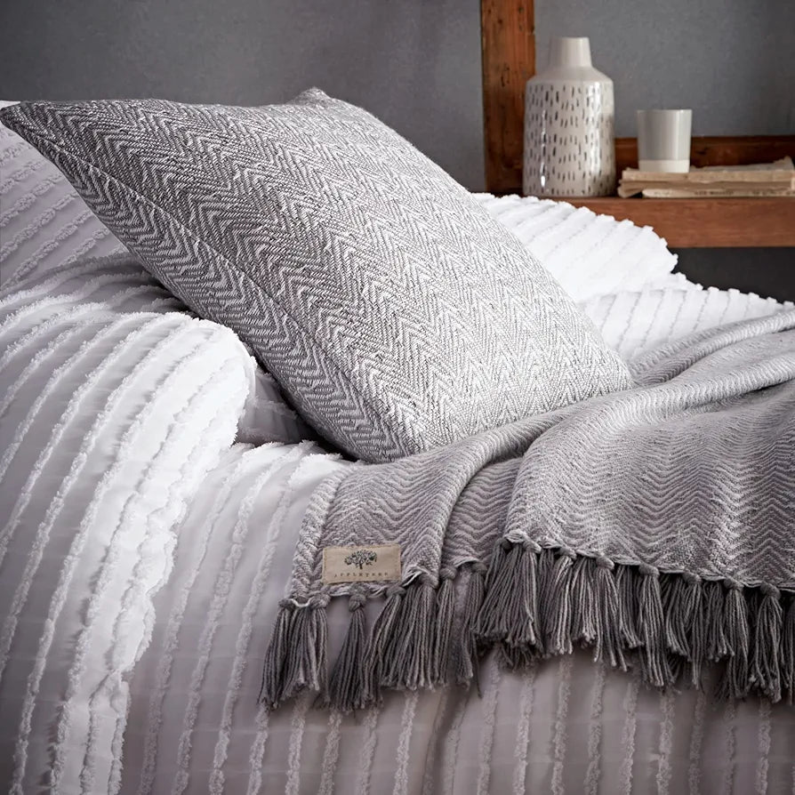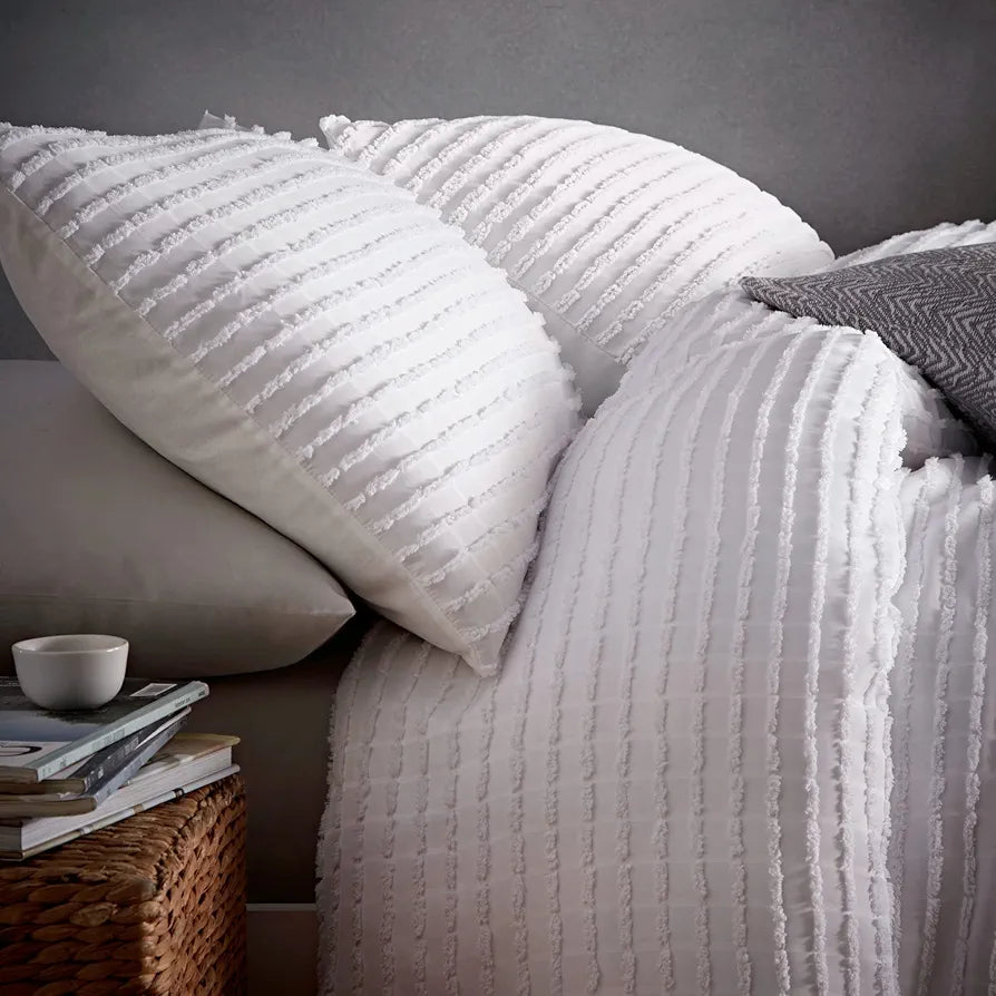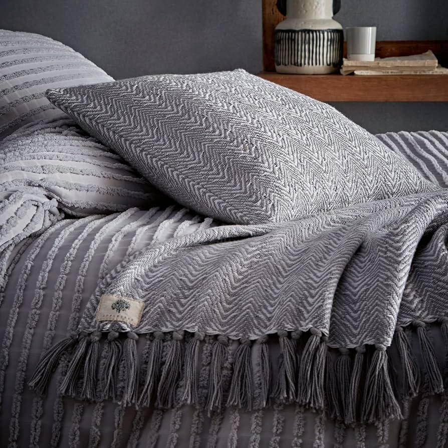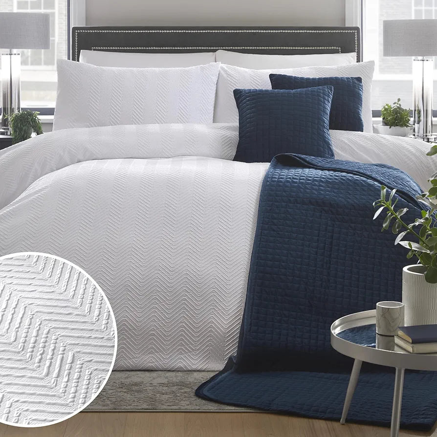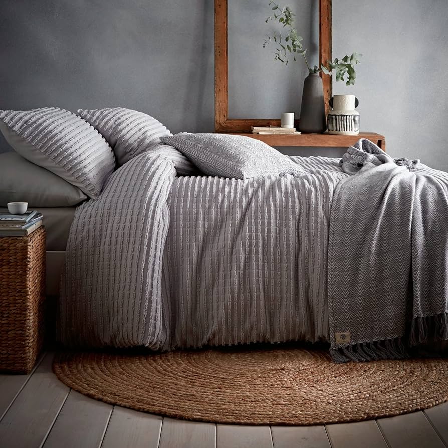 Soiree Mirella Duvet Cover and Pillowcase Set in Double, King and Super King sizes The Mirella duvet cover and pillowcase set by Soiree is a stunning addition to contemporary bedrooms. Crafted from indulgently soft velvet in a deep, dramatic slate tone, the softly shimmering fabric captures the attention with an intricate damask motif running from top to bottom. Carved into the fabric, rather than being simply printed on, it takes on a subtle texture that enhances the sense of depth in your space. A set comprises one duvet cover and two pillowcases in double, king and super king sizes. Material Content: 100% Polyester Washing Instructions: Machine Washable Introducing Soiree, the perfect way to bring a little luxury into your home. Double 200x200cm, King 230x220cm, Super King 260x220cm Includes 2 x pillowcases (76x48cm) Co-ordinating bedspreads also available, see items VNDUH & VNDUI